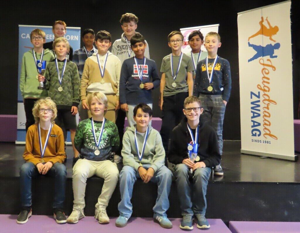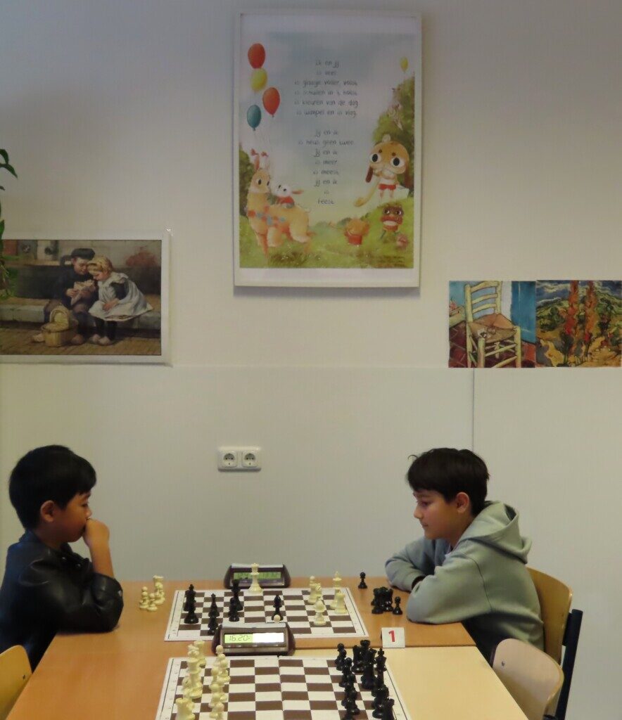 In een van de klaslokalen van de Copernicus SG, waar de groepen 8, 9 en 10 van het achtste Finbotx-jeugdtoernooi schaken, hangt aan een muur een mooie tekening met deze tekst. Het past goed bij het evenement van Caïssa-Eenhoorn, waar iets meer dan honderd kinderen plaatsnemen aan de borden. Zo’n vijftig partijen per ronde en dat zevenmaal. Oftewel 350 keer een feest.