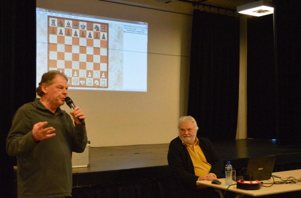 Artur Jussupow keek terug naar 1982, toen hij met zwart tegen Mark Tajmanov speelde. ,,Mark Jevgenjevitsj Tajmanov is vooral bekend van zijn 0-6 nederlaag tegen Bobby Fischer in de kandidatenmatch van 1971, maar daarmee doen we hem te kort. Hij is lange tijd een van de topspelers geweest en is ook kampioen van de Sovjet Unie geworden’’, uitte de ‘docent’ zijn waardering voor de anderhalf jaar geleden overleden schaker uit Sint Petersburg.