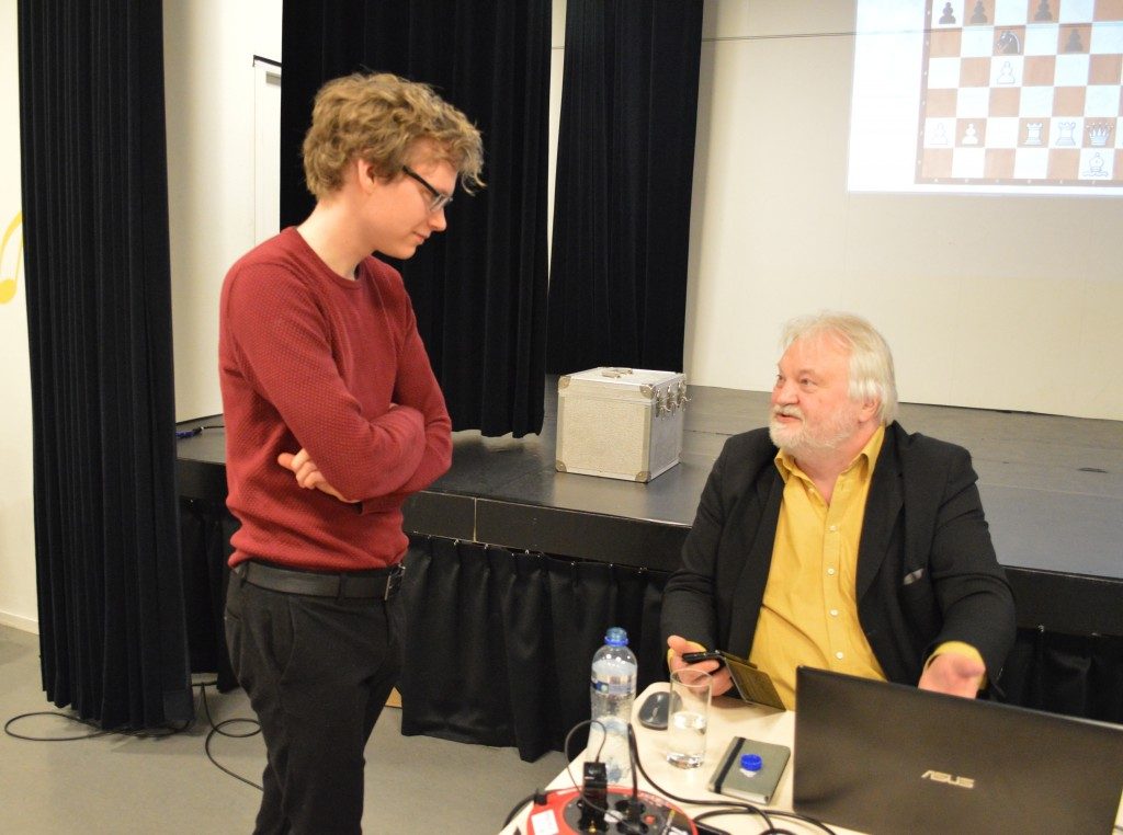 Aan het einde van het college was er gelegenheid om vragen te stellen en er volgde een interessant gesprek, toen Peter Poncin over de rol van de computer vroeg. De Duitse grootmeester: ,,Vroeger hadden we geen engines en moesten we alles zelf ontdekken. Dat heeft voordelen. Je kunt nu met één druk op de knop de beste zet vinden, maar leer je daarvan? Als je in een boek een analyse leest, lees je over hoe een idee of een plan tot stand komt. Wat zijn de achterliggende gedachten bij een bepaalde zet? We moeten zoeken naar een goede combinatie van het gebruik van de computer en het gebruiken van schaakboeken. De perfecte partij bestaat niet. Fouten vormen een deel van de partij.’’