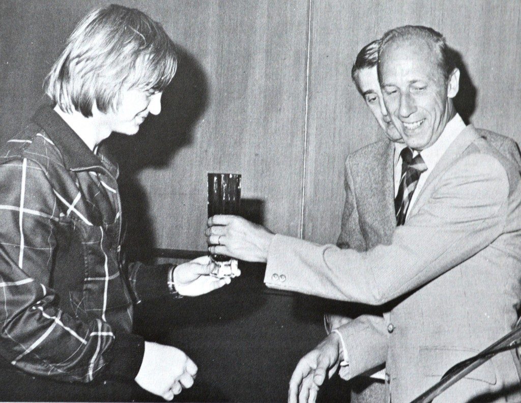 IBM-directeur Kraak feliciteert in 1978 Artur Jussupow. De internationaal meester uit Moskou heeft het toernooi in de grootmeester B-groep gewonnen en zijn eerste grootmeesternorm behaald.
