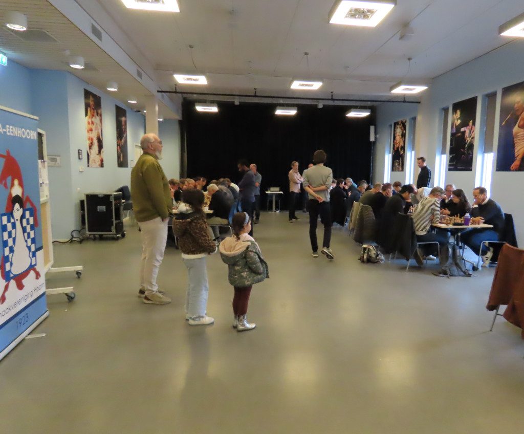 Caïssa-Eenhoorns eerste bondszaterdag 2024-2025 in De Kreek. Weer een volle speelzaal.