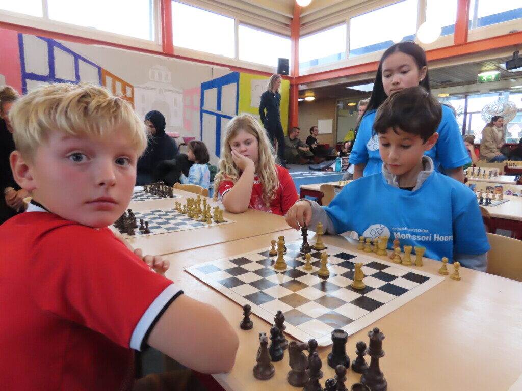 Het gaat om wie de meeste bordpunten verovert. De Jan Luykenschool 2 is de sterkste met 9½ bordpunt, maar de race om de tweede plaats verloopt heel spannend. De Montessorischool 2 uit Hoorn speelt in alle wedstrijden 2-2. Het heeft een half puntje minder dan de Jan Luykenschool 3, met Robin. Misschien zit het wel in de voornaam. Een andere Robin, Robin Duson, speelt bij de Hoornse schaakvereniging Caïssa-Eenhoorn – al vele jaren nauw betrokken bij de organisatie van het Westfries schoolschaakkampioenschap – en is drie keer jeugdkampioene van Nederland geworden.