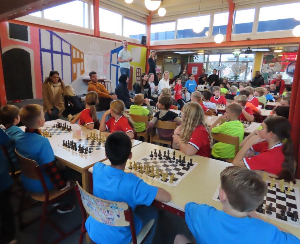 Het is druk in de aula van de Jan Luykenschool. Schellinkhout is een van de vier plaatsen, waar deze woensdagmiddag een begin wordt gemaakt met het Westfries schoolschaakkampioenschap. Wedstrijdleider Martijn de Wit moet de verrichtingen van tien ploegen – veertig kinderen – in de gaten houden. Zij dragen bij aan een forse verbetering van het deelnemersrecord.