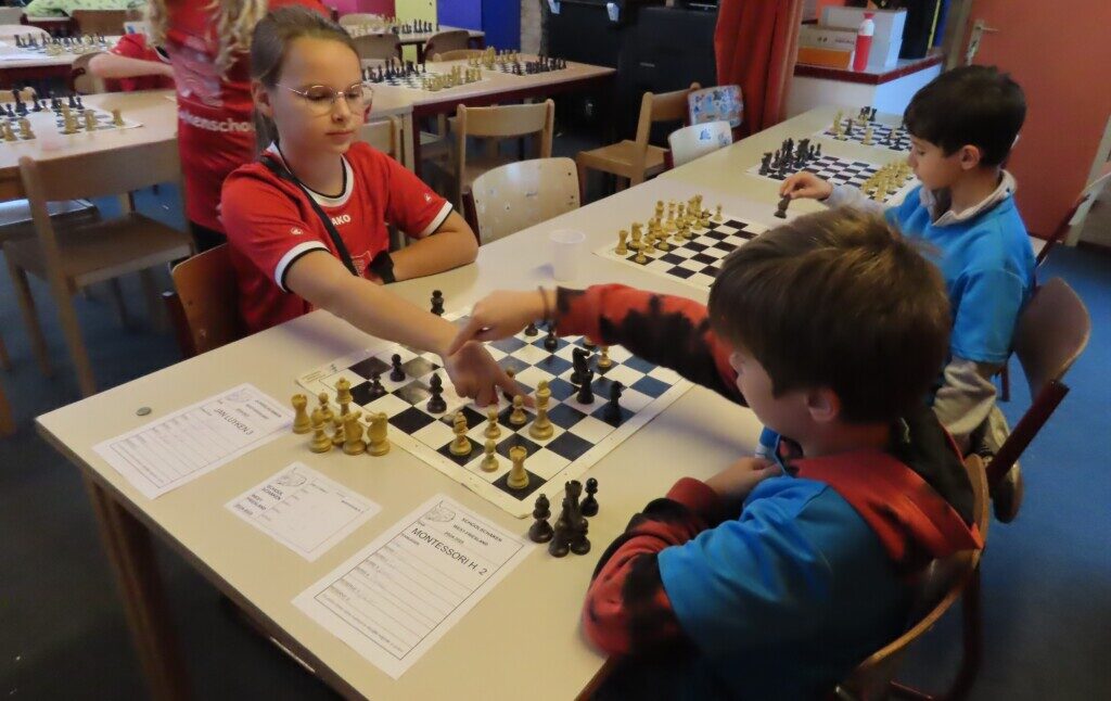 Dat werd een jaar geleden gebracht op 23 scholen met in totaal 43 teams. In Enkhuizen, Hoogwoud, Zwaag en het dorp aan de Zuiderdijk vertegenwoordigen 51 teams dertig scholen. Ruim tweehonderd jongens en meisjes sturen hun pionnen naar voren, laten de paarden springen en worstelen nog wel eens met hun poging om de matzet te spelen.