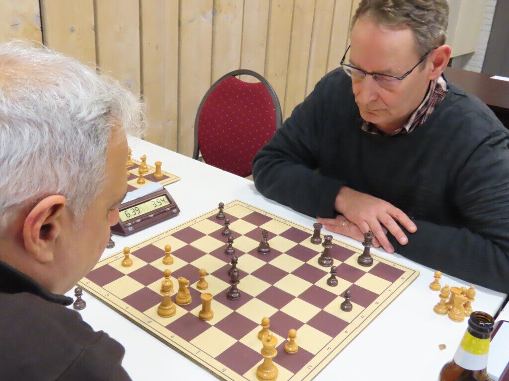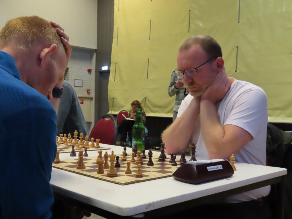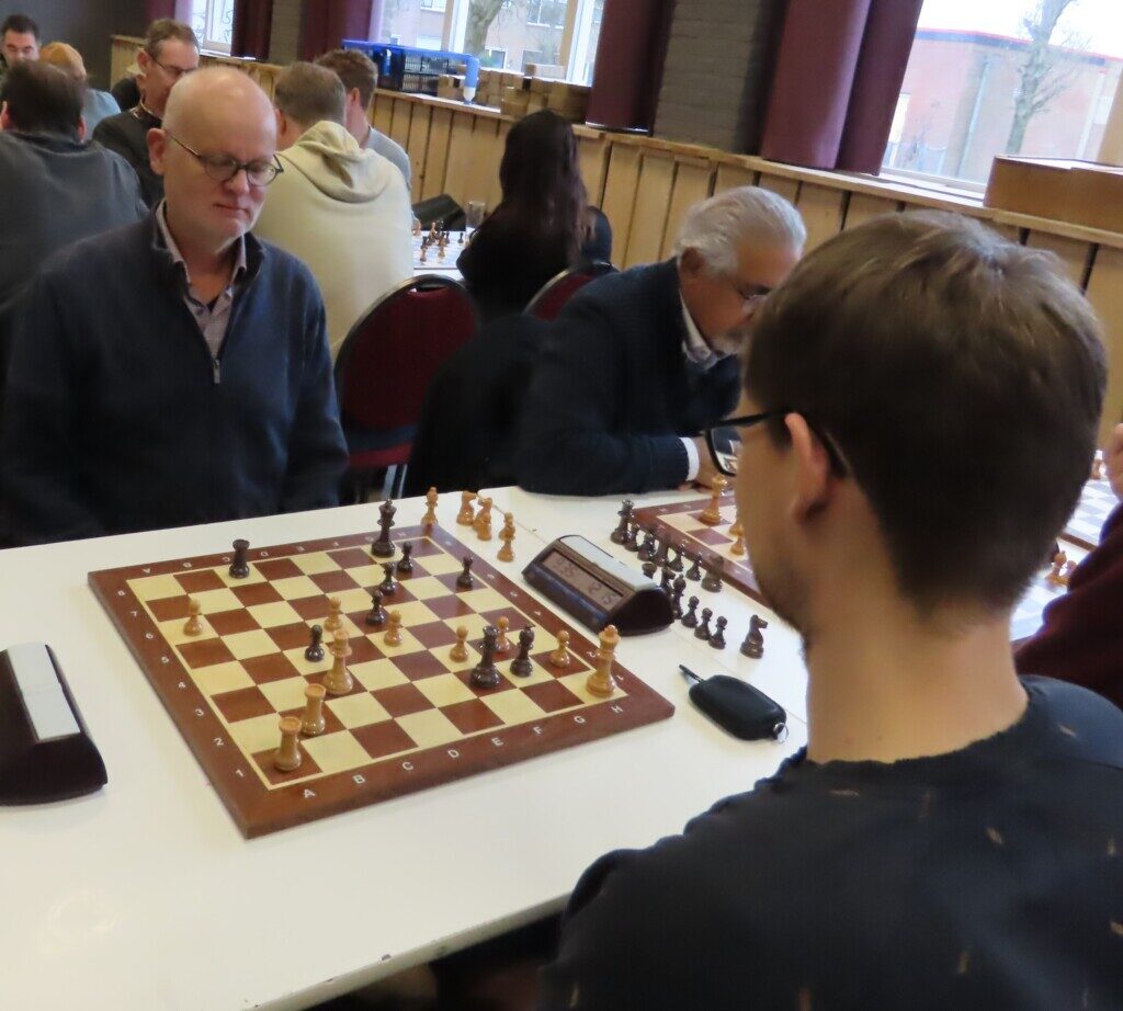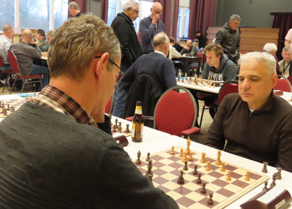 De langste partij in Friemelaars in Andijk – Goatshooters. Het paard op f3 van Nizar Alayoubi wordt aangevallen door een pion van Jos Vlaming.