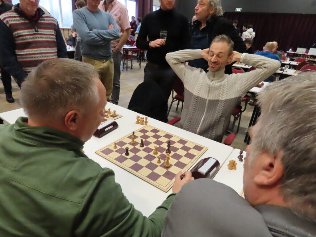 De gemoedelijkheid van het toernooi werd getypeerd door David, die in de zesde ronde zijn opponent Bert Spil (Friemelaars in Andoik) in een remise-achtig eindspel door de vlag had kunnen jagen en dat niet deed. Dat gebeurde bij een 1-2 achterstand, maar ondanks de nederlaag werd Susanne’s Talenten knap vierde. Overigens bleef Bert qua sportiviteit niet achter. Na de zesde ronde had stadgenoot Kevin Smit (De Zettende Zuchters) gevraagd of hij mee terug kon rijden. De twee zaten voor hun zevende en laatste partij tegenover elkaar, met Kevin als sterkste. ,,Nou, dat mee terugrijden kan je wel vergeten’’, was de eerste reactie van de verliezer. Met een grote grijs, want Kevin zat aan het einde van de middag wel in de auto.