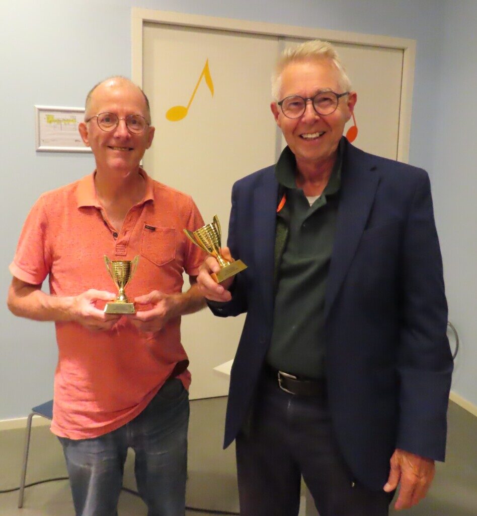 Piet Aardenburg, Fred Avis, Bas van den Berg, Jan Kuin, Ger Roos, Bert Spil en Arend Stapel zijn met Arnold van der Wolff een royale driehonderd jaar lid van onze vereniging. Gezamenlijk goed voor zo’n tienduizend partijen op de clubavonden en in bondswedstrijden. Het zevental werd verrast met eveneens een oorkonde met foto plus presentje.