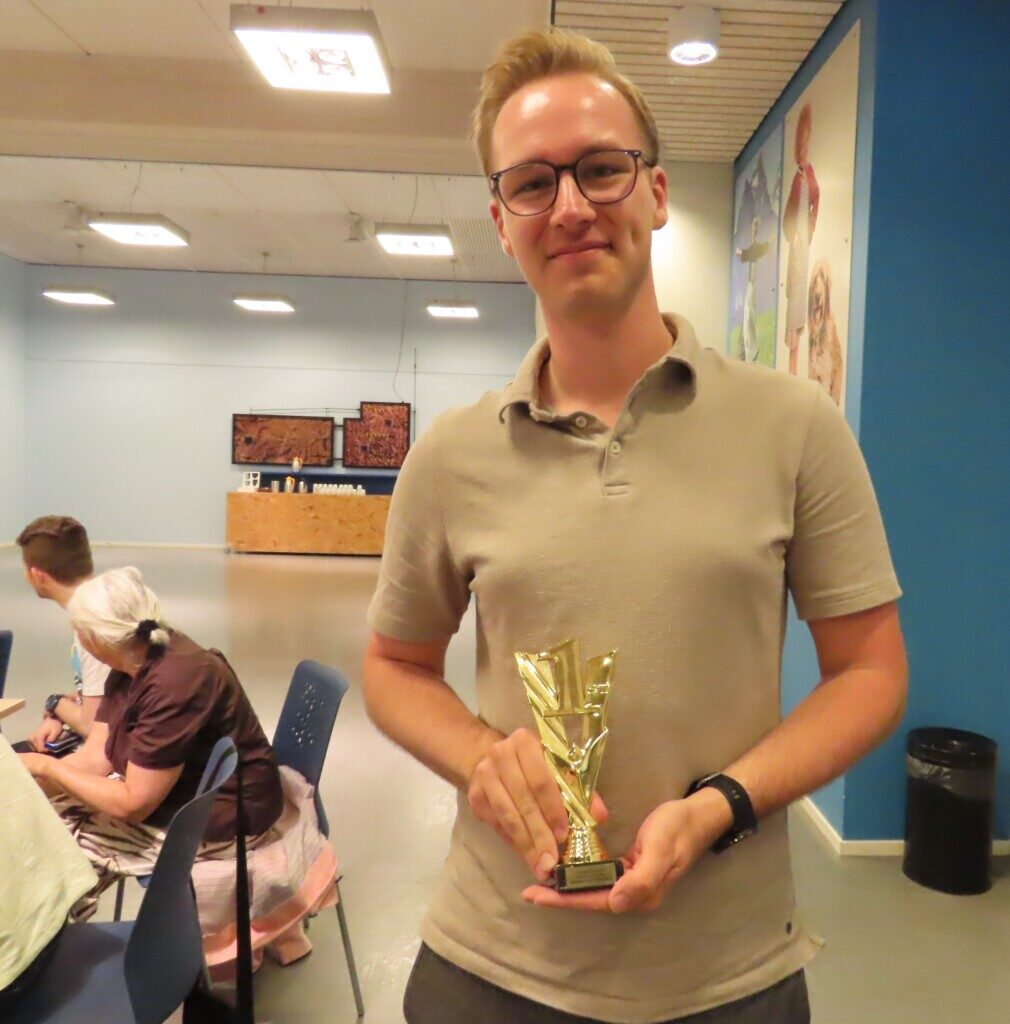 Ook Caïssa-Eenhoorns snelschaakkampioen Mason Brouwer, die de titel prolongeerde, heeft zijn prijs in ontvangst genomen.