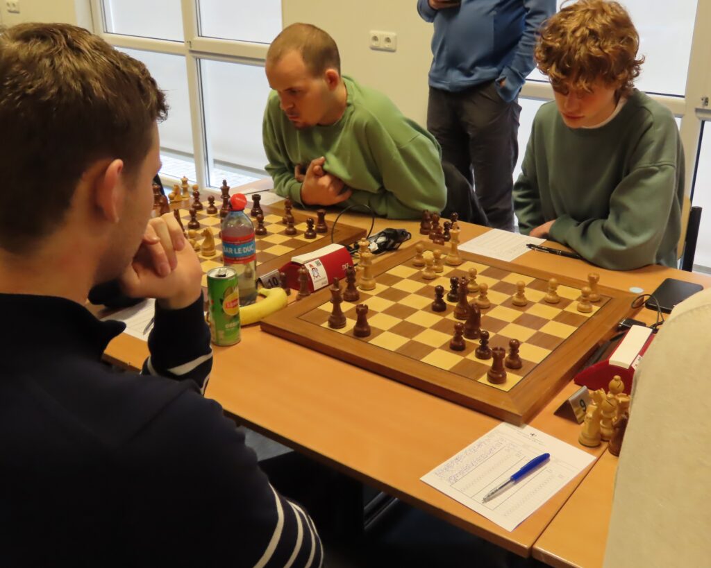 Voor de laatste uitslag van de competitie zorgt Mason Brouwer. Met vijf uit acht is hij bezig aan zijn beste bondsseizoen, maar Romayn Brandsma is niet de ideale opponent om daar nog een punt aan toe te voegen. De jonge Purmerender is door zijn recente KNSB-uitslagen (onder meer winst tegen Yochanan Afek en remise tegen Sander Los) de 2000-grens gepasseerd en zijn remise tegen Mason zal ook wel wat ratingpunten opleveren.