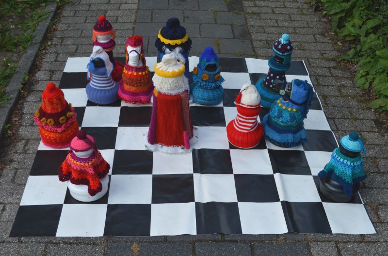 Een gebreid schaakspel is komende zondag (25 augustus) in de historische binnenstad van Hoorn te bewonderen. Het centrum is de locatie voor de slotactiviteiten van de Westfriese Waterweken en voor een wildbreiproject, waar het schaakspel een onderdeel van is.