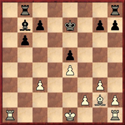 18...e5! "Sproink, de paraplu gaat open." 19.fxe5 Pxe5 20.Dg3 Pxd3 21.Pxd3 Lf5 en zwart had geen problemen meer. Na 46 zetten stond het zo: