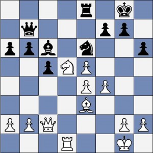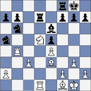 Wit staat iets beter met het loperpaar en een mooi paard op d5 maar objectief gezien is er nog niet teveel aan de hand. Zwart bezwijkt hier echter onder de druk. 21...f6? Het is niet nodig om zomaar een pion te geven, 21...Pc6! houdt het bij elkaar. Na 22.Lxb6 axb6 23.Txb6 staat zwart gewoon een pion achter, maar de technische klus werd versneld met 23...Tc8?? 24.Txe6. Tja, torens kunnen ook opzij.