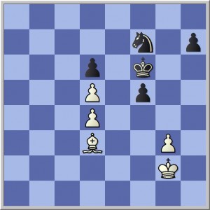 41…fxg4 42.Lxh7 Kg5 Dit is andere koek. Pion d4 gaat op termijn verloren en daarna ook d5. Het resterende eindspel is vervolgens triviaal, en Monty gaf dit niet meer uit handen (0-1, 57). Het beslissende punt!