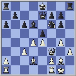 Hoewel ik vrijwel al mijn toenmalige analyses vergeten was, kwam de opgedane ervaring goed van pas. Nadat op zet 10 de dames geruild waren, stond zwart in een tactisch eindspel voor een fundamentele keuze: lopers ruilen, of juist niet?
