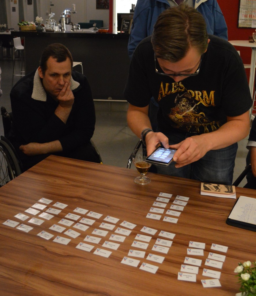 De loting gaat beginnen. Robbert van Dijkhuizen helpt Frank Tieken die de eerste vijf bekerpartijen samenstelt.