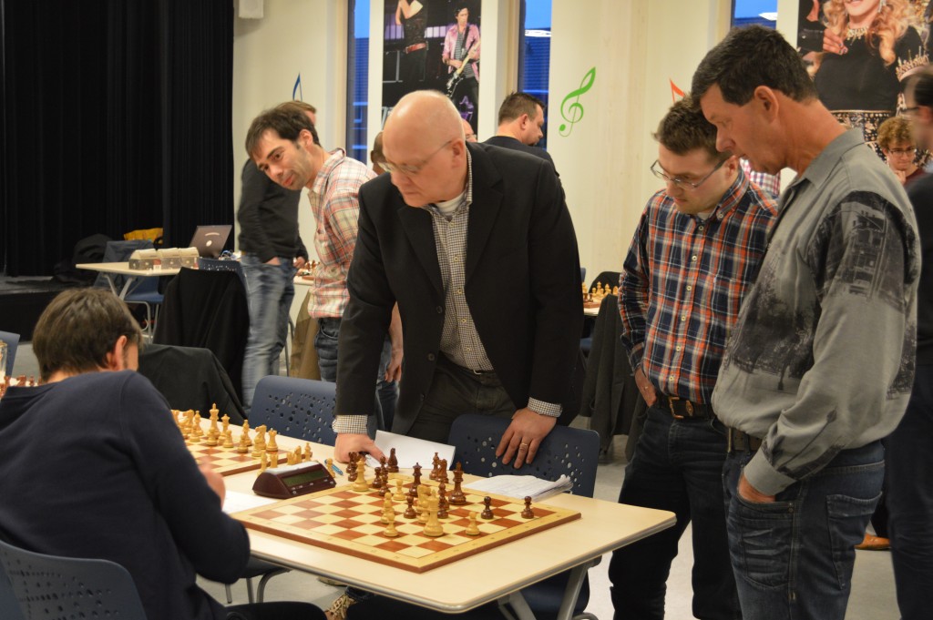 Voor de thuisploeg is de nederlaag van Ron Deen (wit) een tegenvaller. Hij bereikt tegen Jermo Kooijmans na dameruil een goede stelling, maar geeft het bezit van de diagonaal a7-g1 uit handen. Daar profiteert de zwartspeler van die met een sterk loperpaar, een actieve koningstoren en een superieur paard een winnende aanval heeft.