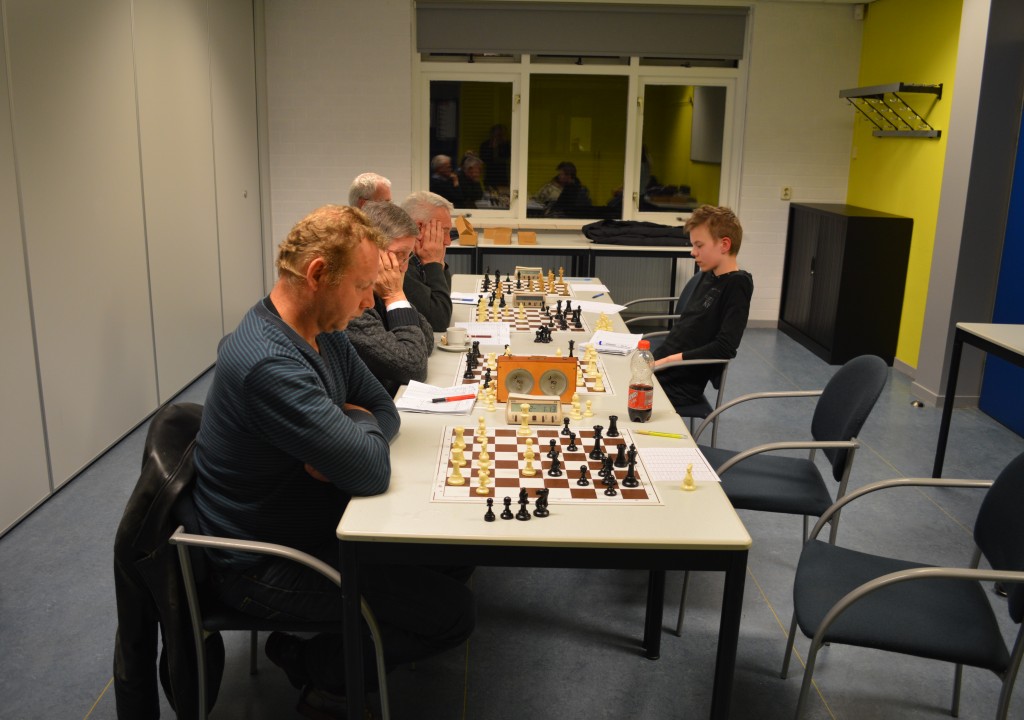 Zo werd het 1½-2½ tegen het viertal dat onderaan staat, maar wel de meeste bordpunten heeft gehaald tegen kampioen Caïssa-Eenhoorn.