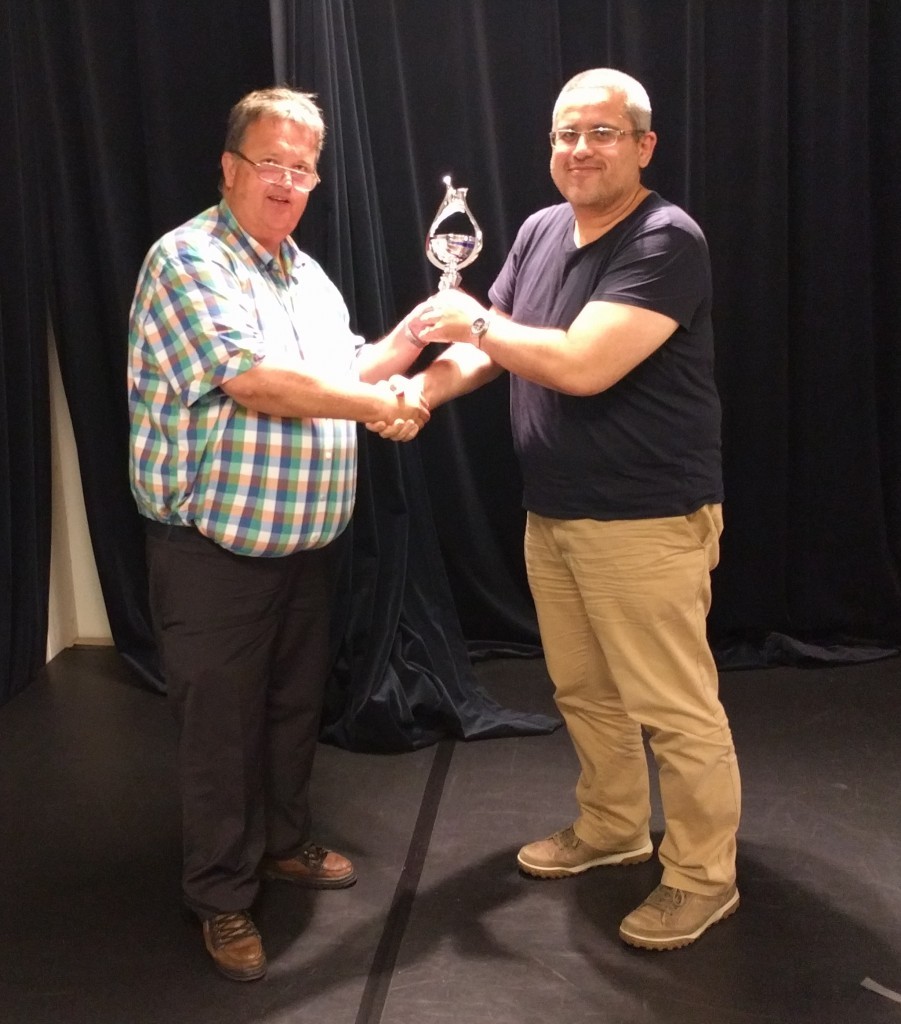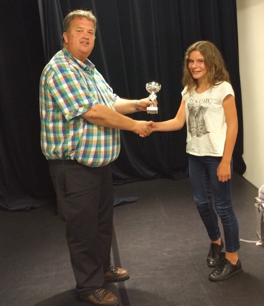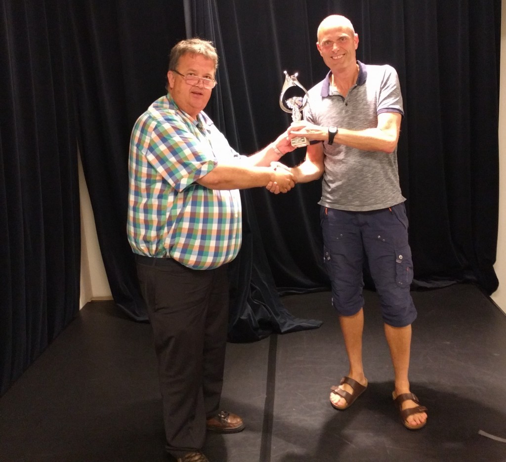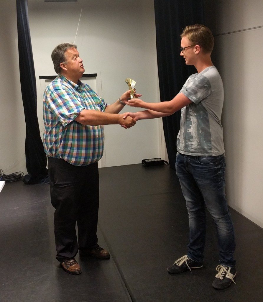 - Willem van der Veen neemt de derde prijs van de reeds verhuisde Holger Bonte in ontvangst.