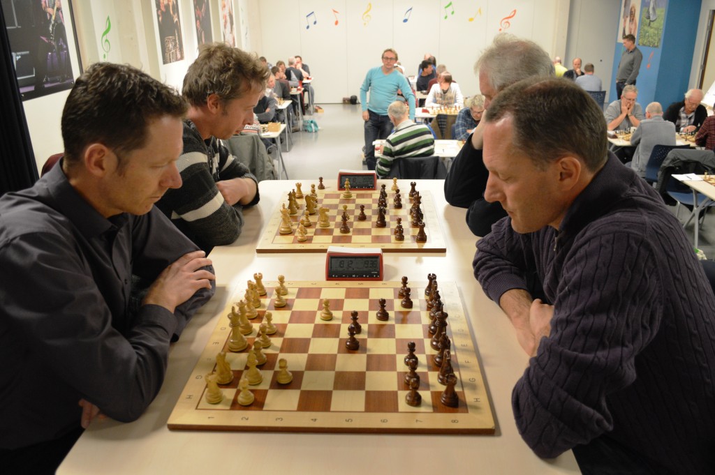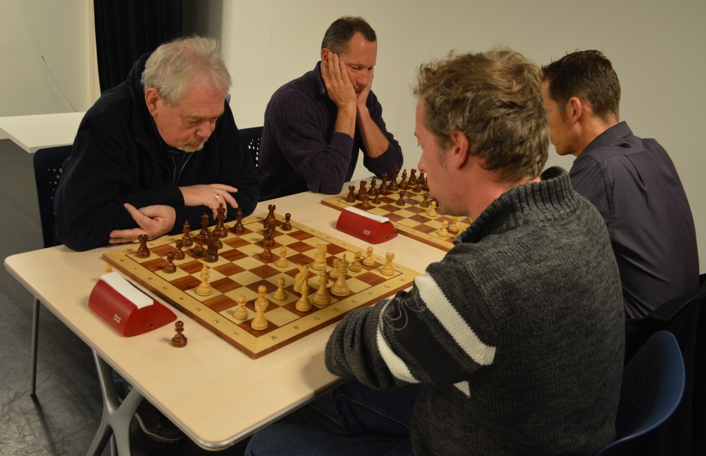 Gisteren namen de vier matadoren, hun gemiddelde rating is 2132, plaats op het podium voor de eerste drie ronden. Gelijktijdig met de tiende ronde van de clubcompetitie en een aantal partijen voor het interne bekertoernooi. Over de afloop valt niets te zeggen. Van de zes partijen kreeg er slechts één geen winnaar, terwijl allevier al minstens één verliespartij achter hun naam hebben staan. De onderlinge verschillen zijn klein en op de tweede avond (de datum moet nog worden afgesproken) is van alles mogelijk.